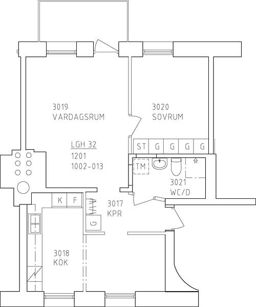 • 1002-013 planlösning 2 rok Varvsgatan 61 B pdf skala 1:100.